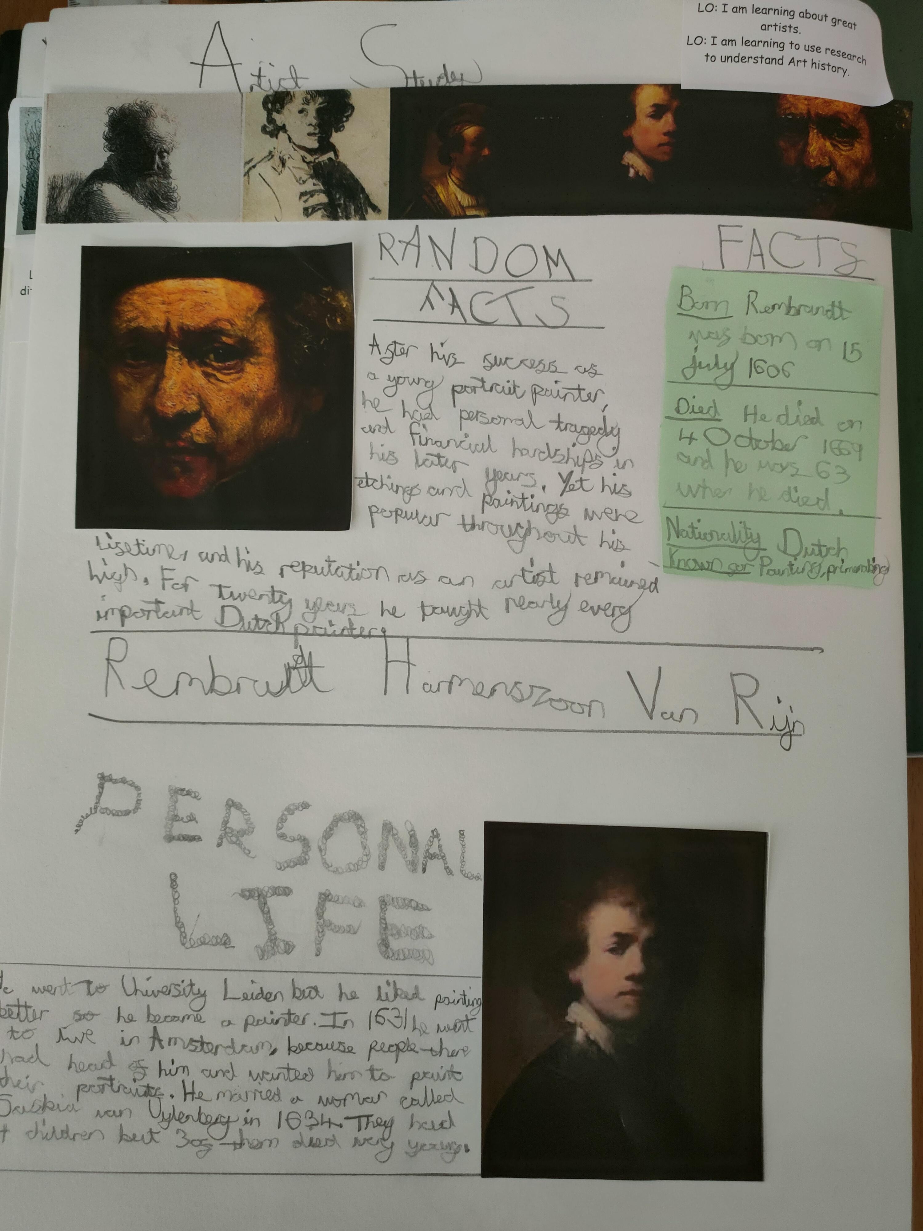 We have begun learning about the artist Rembrandt and studying some of his portraits.
